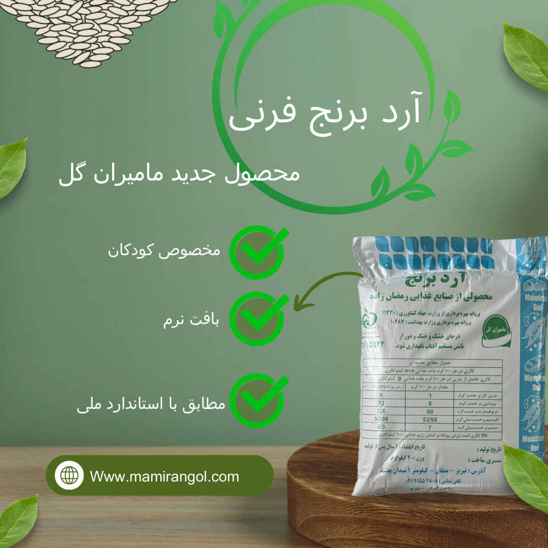 مجموعه مامیران گل با استفاده از دستگاه آلات پیشرفته و روز دنیا توانسته یک محصول جدید آرد برنج مخصوص غذای کودک و فرنی طراحی و تولید کند.