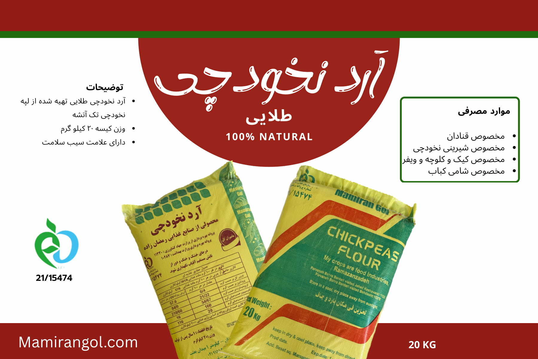 آرد نخودچی گلد مخصوص صادراتی محصول جدید از مجموعه مامیران گل رونمایی شد.